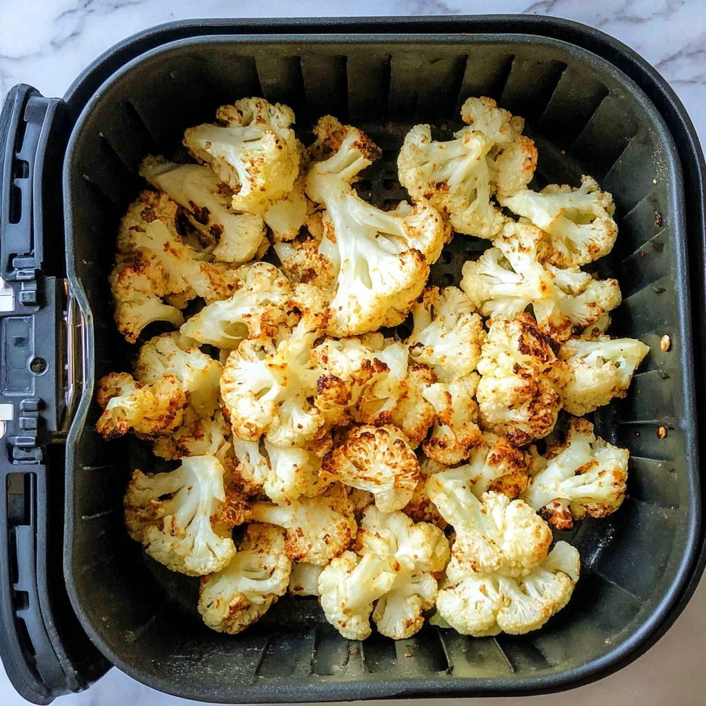 Set your air fryer to 400 degrees Fahrenheit and cook the cauliflower for 10 to 15 minutes. Don’t forget to toss the florets about halfway through cooking—this keeps the crispiness consistent all over. Cooking times might vary depending on how tender or crispy you prefer your cauliflower, so feel free to adjust accordingly.