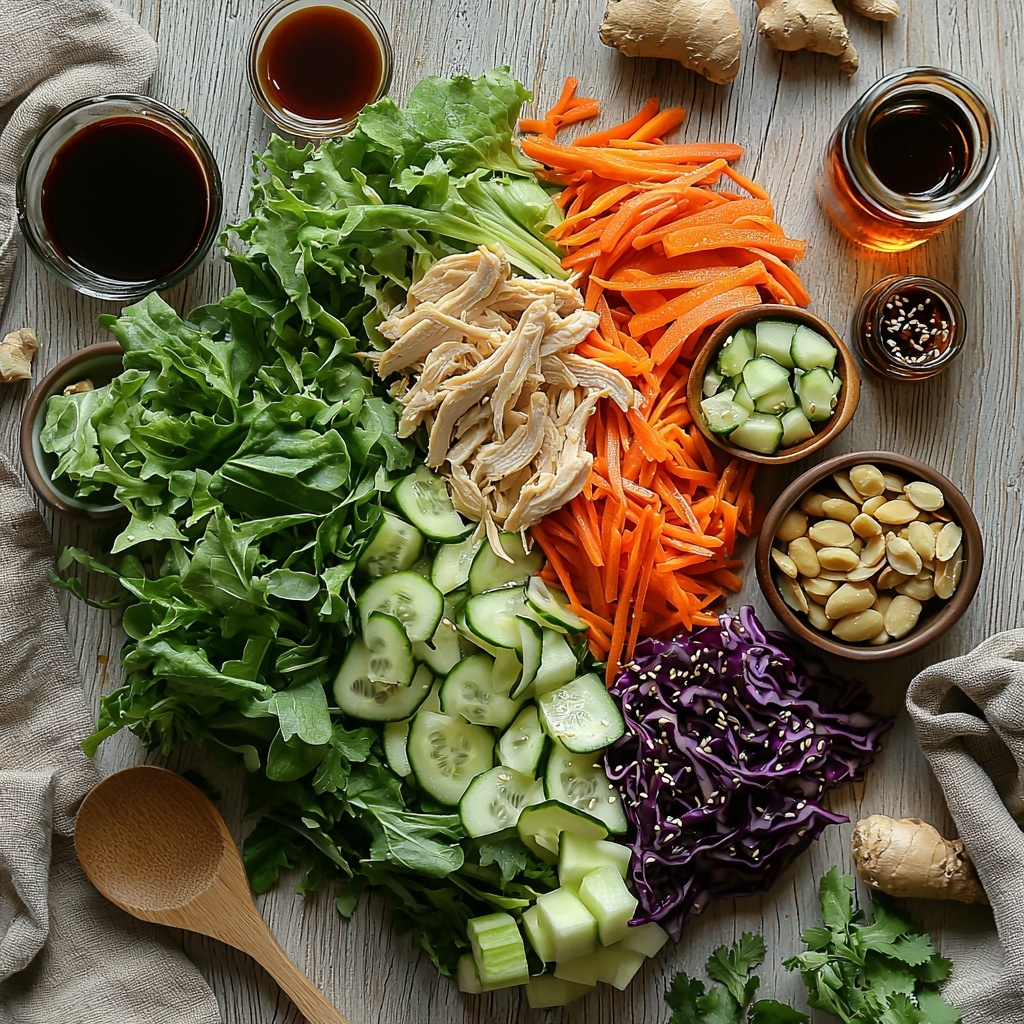 Gathering the right ingredients is key to making this Asian Chicken Salad Recipe shine. Each adds something special, from crunch and color to that punch of umami and freshness that keep every bite exciting.