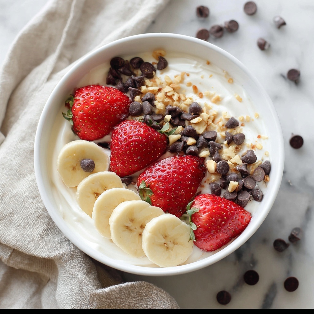 The finishing touches are what make this Banana Split Yogurt Bowl Recipe truly irresistible. Sprinkle a generous handful of chocolate chips or drizzle melted chocolate on top to satisfy that sweet tooth craving. Finally, scatter chopped nuts like peanuts or walnuts to introduce a crunchy, nutty element that makes every bite exciting.