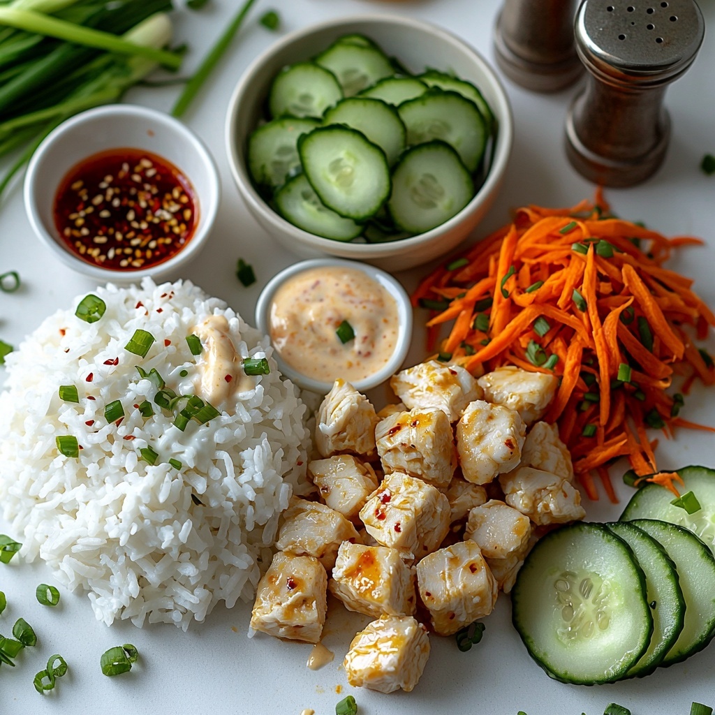Gathering the right ingredients is key, but don’t let the simplicity fool you — each item plays an essential role in bringing the Bang Bang Chicken Bowl: 5 Irresistably Delicious Secrets Recipe to life. From the creamy base of the sauce to the fresh crunch of the vegetables, these ingredients ensure every bite hits the perfect balance of flavor, texture, and color.