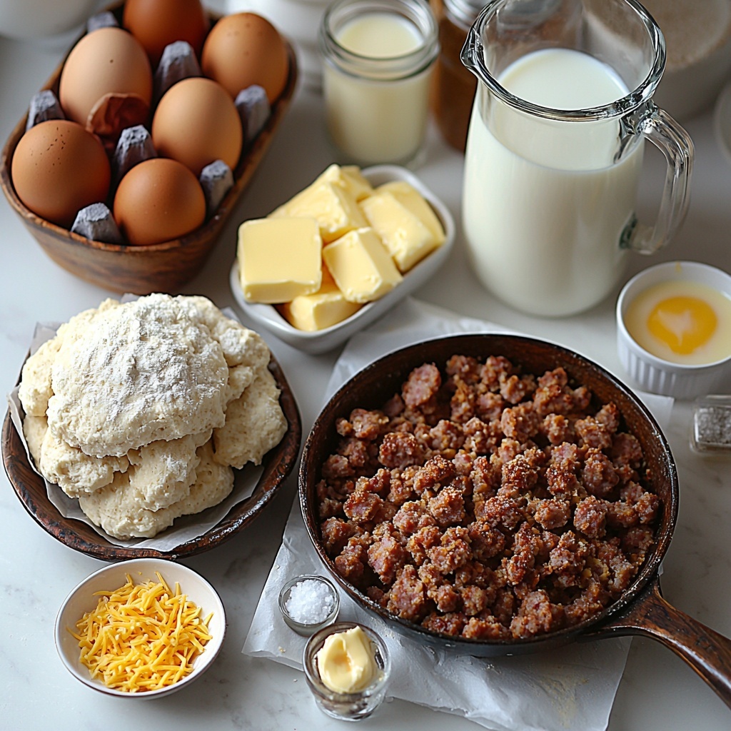 These ingredients are simple pantry staples, yet each plays a crucial role in delivering the incredible taste and texture of this casserole. From the juicy sausage that packs flavor to the flaky biscuits and creamy cheese, every component works beautifully together.