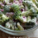 Fresh broccoli works best because it provides the crisp texture needed for this salad. Frozen broccoli tends to become mushy after thawing and won’t hold up as well in the creamy dressing.