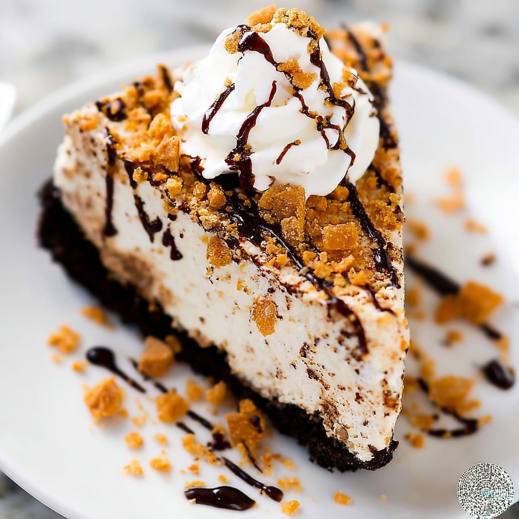 This Butterfinger Pie is a creamy, no-bake dessert featuring a rich blend of cream cheese and whipped topping combined with crunchy Butterfinger candy pieces all nestled in a chocolate OREO pie crust. Perfectly chilled and topped with extra Butterfinger bits, it offers a delightful texture contrast and an indulgent peanut butter and chocolate flavor, making it a crowd-pleaser for any sweet tooth.
