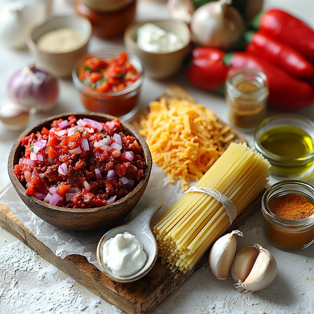 This recipe shines because it uses straightforward ingredients that work beautifully together to create a dish full of flavor, texture, and color. Each component plays a special role—from the spices that bring the taco flair to the rich cheeses that give it that irresistible melty top.