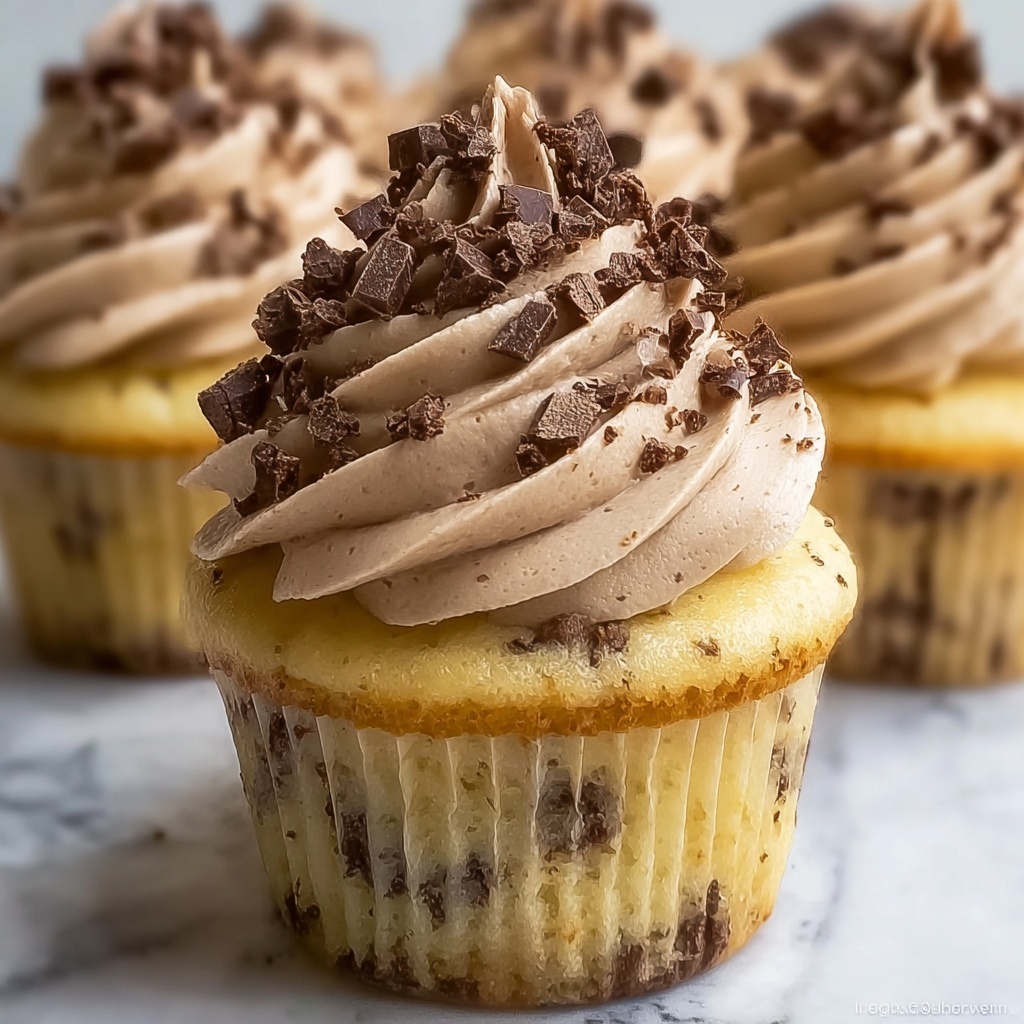 Delight in these moist and tender Chocolate Chip Cupcakes, perfectly balanced with a hint of cinnamon and loaded with mini chocolate chips. Topped with a luscious cocoa buttercream frosting, these cupcakes are an irresistible treat for any occasion, combining rich flavors and a soft crumb for a perfect bite every time.