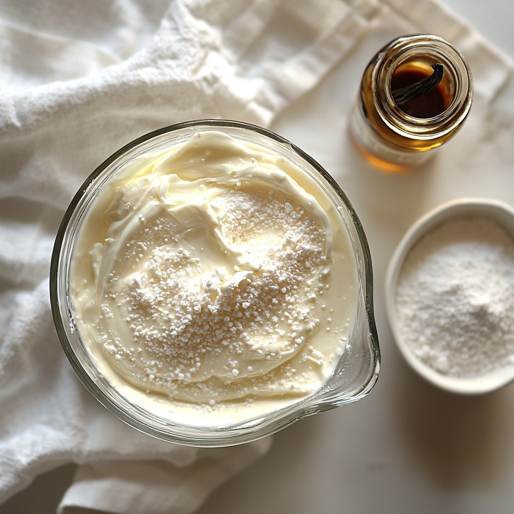 Pour the chilled heavy cream into your cold bowl. Using a hand mixer or stand mixer on medium speed, begin whipping the cream. In this early stage, it will look bubbly and loose—patience is key because this is where the magic starts to happen.