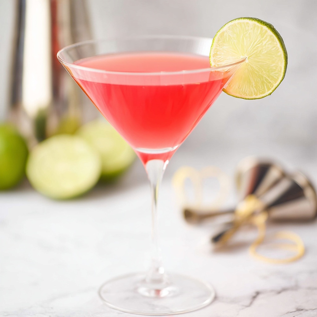 5. Garnish and serve: Garnish each glass with a slice or twist of lime, adding a zesty aroma and visual appeal. Serve immediately and enjoy your refreshing Cosmopolitan cocktails. Cheers!