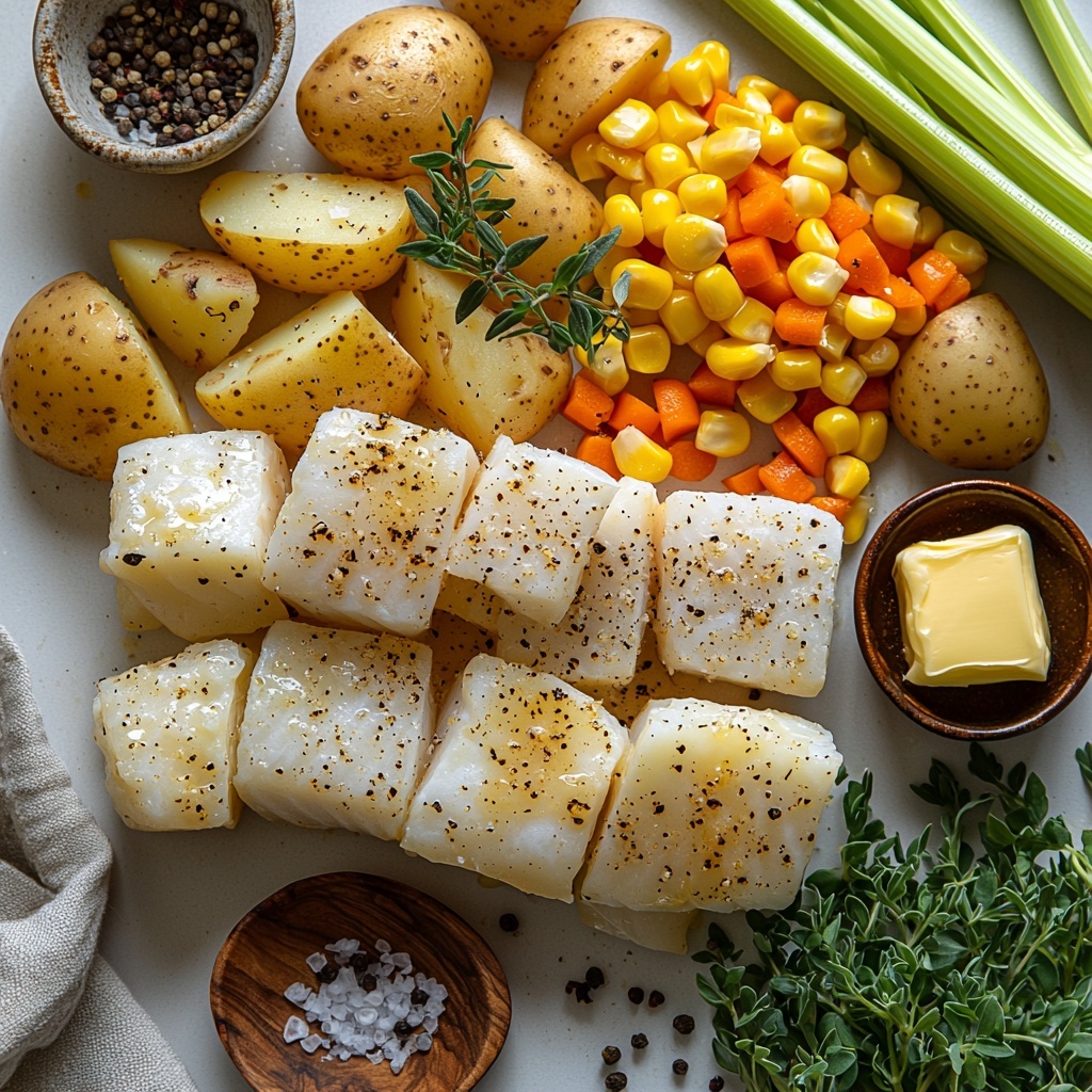 The magic of this Creamy Fish Chowder Recipe lies in its simple, thoughtful ingredients. Each component contributes to the chowder’s depth—potatoes add body, fish brings delicate flavor, and fresh vegetables offer both texture and freshness. Let’s break down the essentials that make this chowder a must-try.