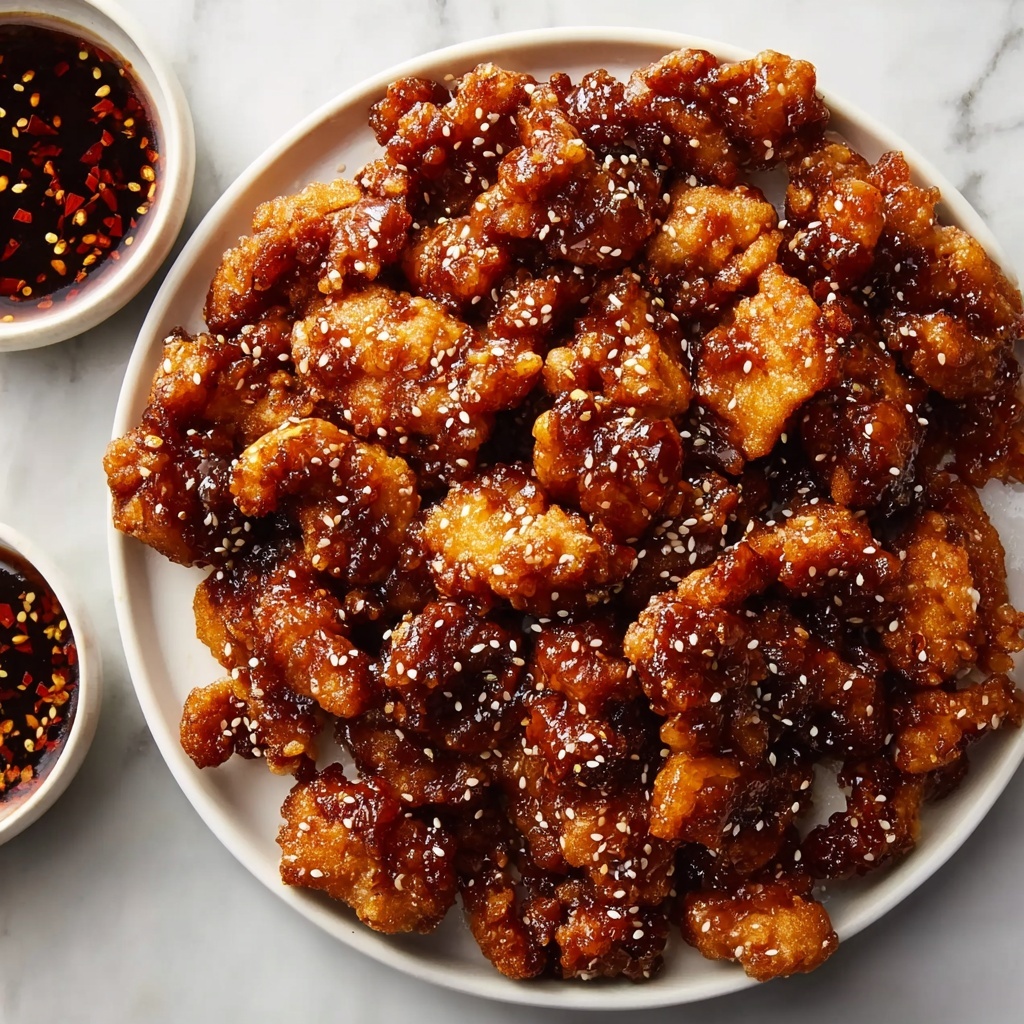 Sprinkling toasted sesame seeds over the finished chicken adds a nutty crunch that perfectly complements the sticky sauce. A handful of sliced green onions brings a fresh, slightly sharp contrast and a vibrant splash of green that makes the dish pop on the plate.