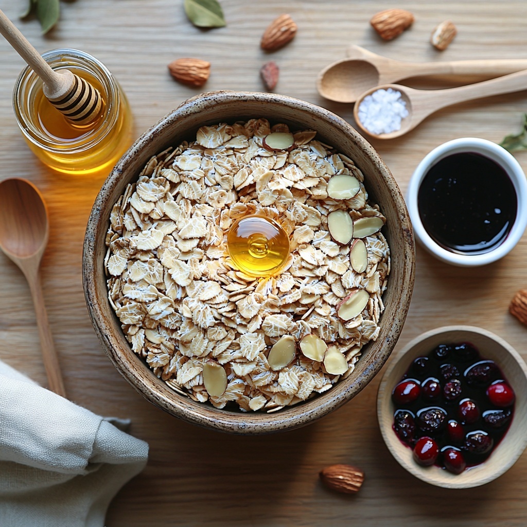 Creating the perfect Crunchy Granola Heart Bars Recipe starts with a handful of simple, natural ingredients that each play a key role. From the wholesome oats to the rich coconut oil, every component enhances the chewy-crunchy texture and the sophisticated flavor profile of the bars.