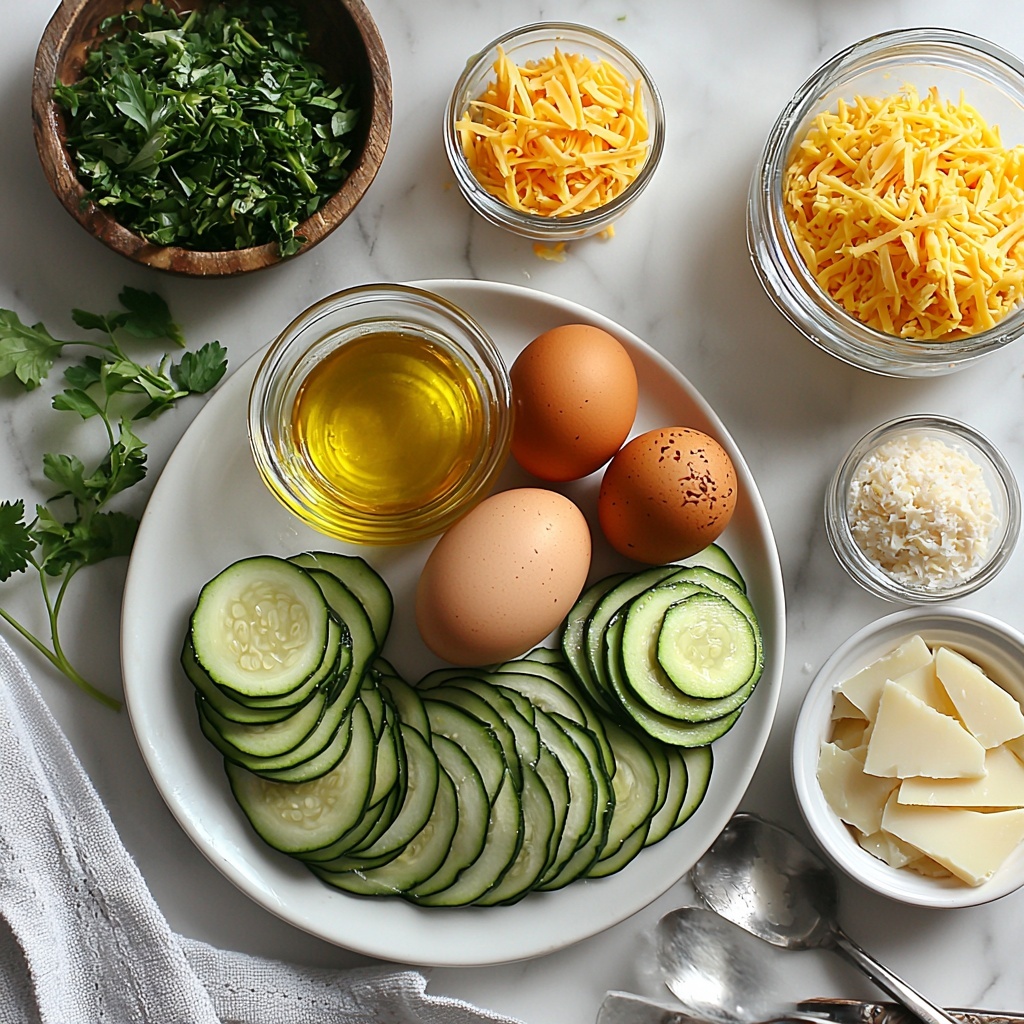 Gathering your ingredients for this Crustless Zucchini Pie Recipe is a breeze because each one plays a crucial part in creating the perfect balance of texture, taste, and color. From the creamy richness of the cheeses to the fresh brightness of herbs and zucchini, every element is simple yet indispensable.