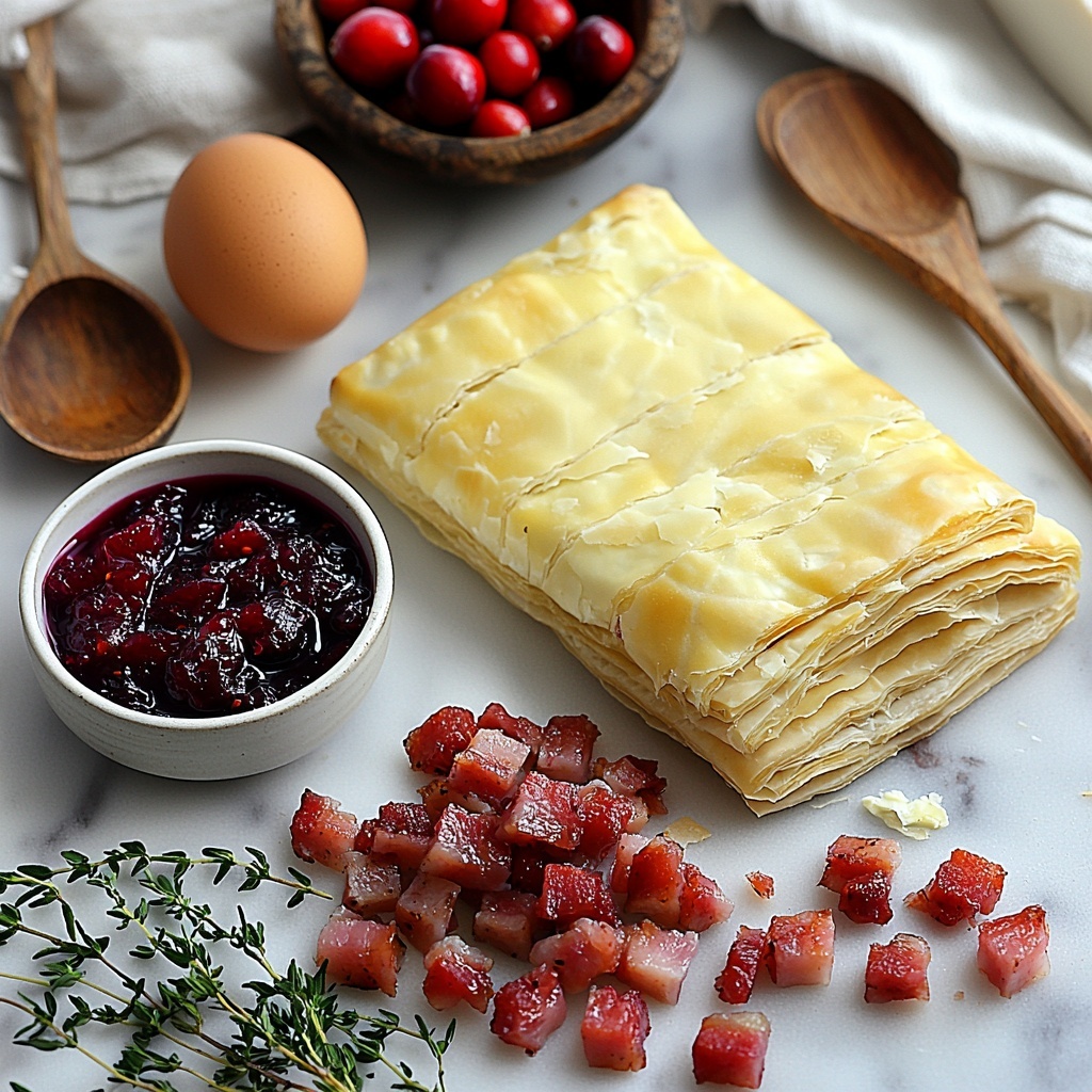 The magic of this Delicious Cranberry Brie Tart with Pancetta for Festive Joy Recipe lies in how simple, yet essential each ingredient is. Every component adds its own unique touch—whether it’s the flaky texture of puff pastry, the creamy richness of Brie, or the punch of salty pancetta that contrasts perfectly with bright cranberry sweetness.