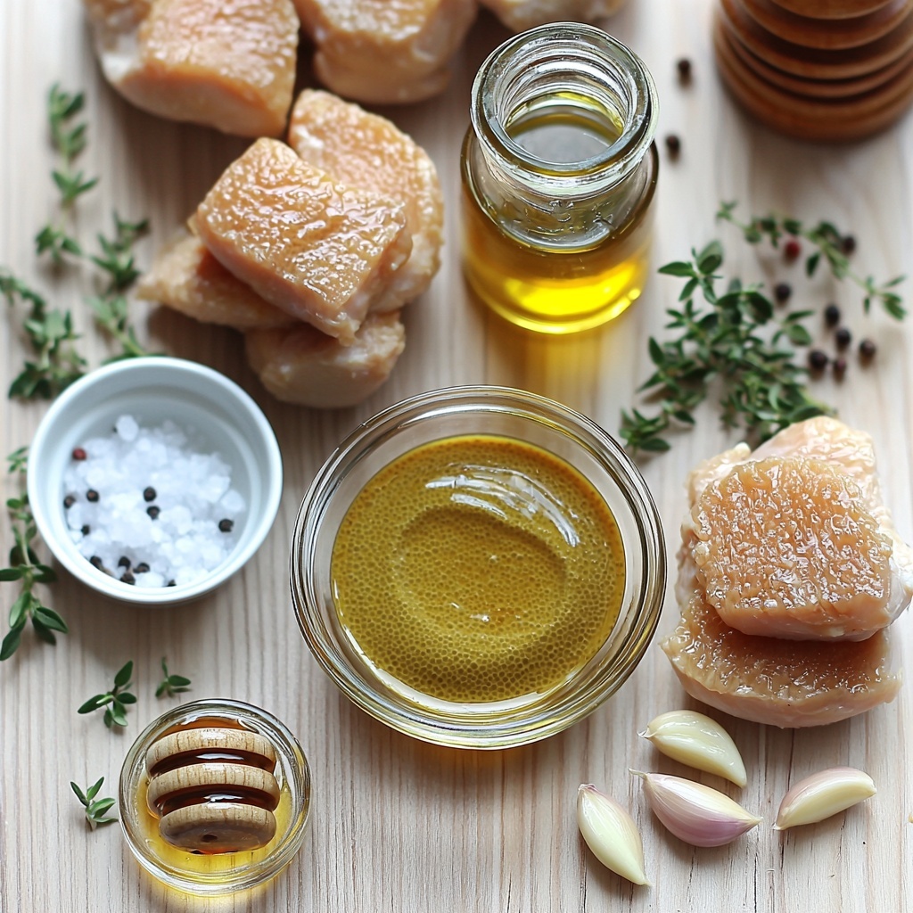 3. Make the Marinade: In a medium bowl, whisk together Dijon mustard, honey, minced garlic, and olive oil until smooth and fully combined.