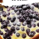 Pour your smooth batter right into the buttered skillet, then scatter the blueberries evenly over the top. You want fruit throughout so every slice has sweet pops of juicy goodness paired with that tender, airy batter.