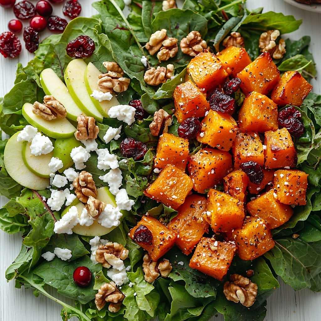 A vibrant and nutritious fall salad featuring mixed greens, roasted butternut squash, crisp apples, toasted walnuts, dried cranberries, and crumbled feta cheese, all tossed in a zesty maple lime dressing perfect for a refreshing and seasonal meal.