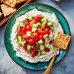 This Greek Feta Dip with Fresh Vegetables and Olive Oil Recipe pairs beautifully with warm pita bread, crunchy pita chips, or crisp crostinis for dipping. It also makes a fantastic side alongside grilled meats, roasted vegetables, or even as part of a mezze platter brimming with other Mediterranean delights.
