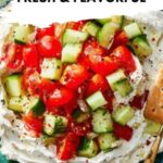 This Greek Feta Dip is a creamy, tangy, and flavorful appetizer perfect for entertaining or casual snacking. Made by blending feta and cream cheese with herbs and lemon juice, it is topped with a fresh medley of grape tomatoes, cucumbers, red onion, and optional Kalamata olives for a refreshing, Mediterranean twist. Serve it with pita chips or crostinis for a delicious, easy-to-make dip that brings the vibrant flavors of Greece to your table.