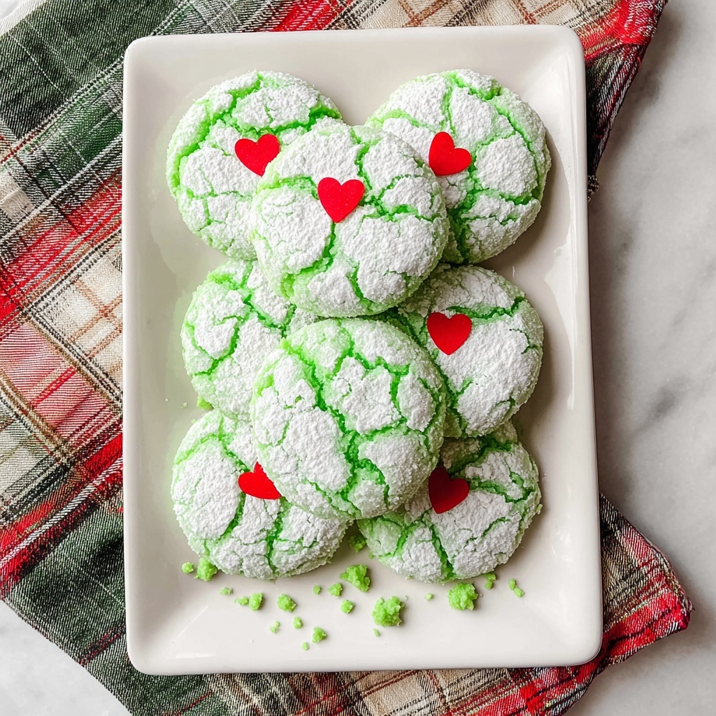 If you’re looking for a festive treat that’s bursting with green holiday cheer and a playful pop of sweetness, this Grinch Cookies Recipe is just the thing to brighten your kitchen and your mood. These soft, chewy cookies are coated in a delicate cloud of powdered sugar and cornstarch, dyed a vibrant green, and topped with a cute heart sprinkle or red candy that perfectly captures the spirit of the Grinch in the most delicious way. Ready in just 20 minutes and yielding 18 servings, they’re a fantastic go-to for holiday celebrations, cookie exchanges, or just a fun baking project with friends and family.