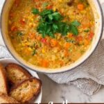 This soup has a naturally thick and hearty consistency thanks to the red lentils breaking down during cooking. If you prefer a thinner soup, simply add more broth or water to adjust it before serving.