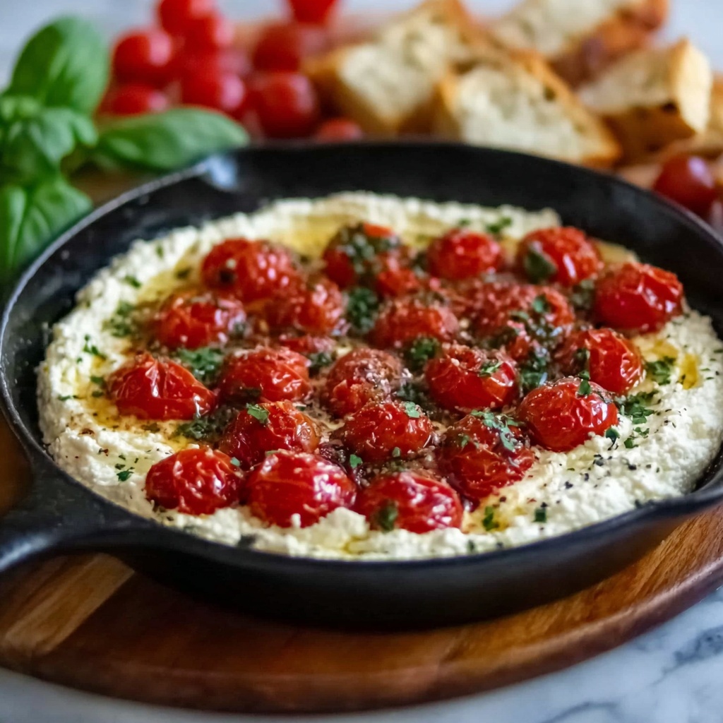 Hot Caprese Dip with Roasted Tomatoes & Burrata is a warm and creamy Italian-inspired appetizer featuring sweet roasted cherry tomatoes, melted mozzarella, and soft burrata cheese. This scoopable dip is perfect for entertaining or cozy gatherings, offering classic Caprese flavors in a comforting, shareable form.