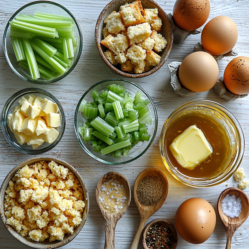 The beauty of Mama’s Cornbread Dressing Recipe lies in its simplicity. Every ingredient plays a crucial role, bringing color, texture, and flavor that meld perfectly together. From the aromatic sautéed onions and celery to the tender mix of cornbread and toasted bread, these essentials create a harmony that’s truly irresistible.