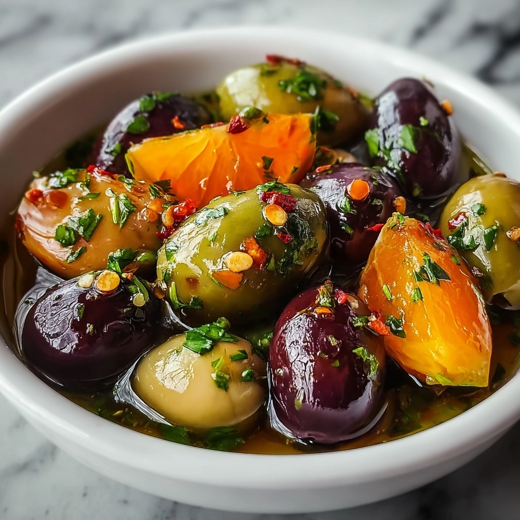 There is something truly special about the way olives transform when married with the bright zest of orange and the punch of garlic in this Marinated Olives with Orange and Garlic: A Flavorful Mediterranean Delight Recipe. It’s a celebration of simple ingredients coming together in harmony to create a dish bursting with character and Mediterranean flair. I wholeheartedly encourage you to give this recipe a try, whether you’re planning a gathering or just want a tasty, healthy snack on hand. Your palate will thank you, and soon these marinated olives will become one of your go-to favorites anytime you want to add a little sunshine to your table.