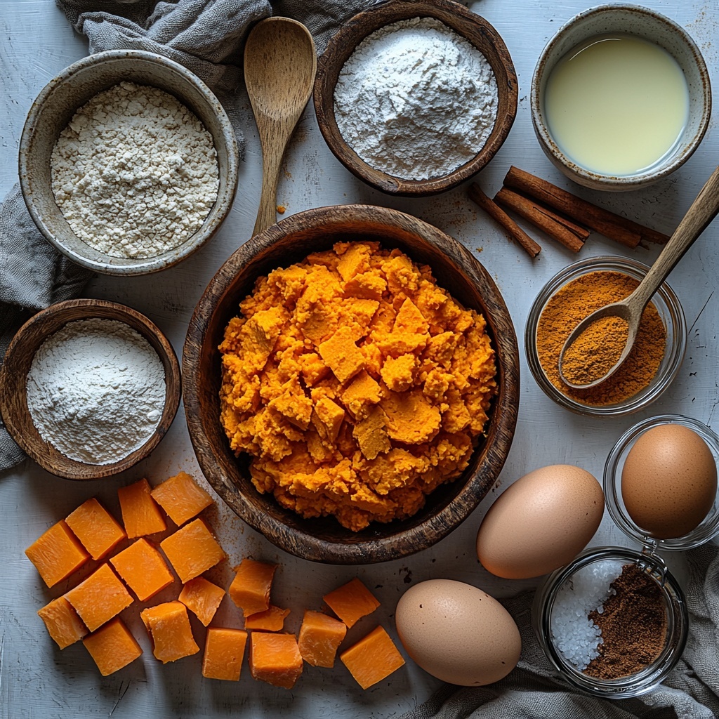 1. Prepare Sweet Potatoes: Roast or boil sweet potatoes until soft. Allow them to cool, then peel and mash until smooth to achieve the perfect texture for the batter.