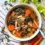 This Nourishing Chicken Quinoa Soup with Vegetables is a hearty and wholesome meal, perfect for cozy days. Packed with tender chicken breast, nutrient-rich quinoa, and plenty of fresh vegetables like carrots, celery, and kale, this soup offers a comforting blend of flavors enhanced by garlic, thyme, and tomatoes. A touch of red wine vinegar brightens the dish, making it a well-balanced, healthy option for lunch or dinner.