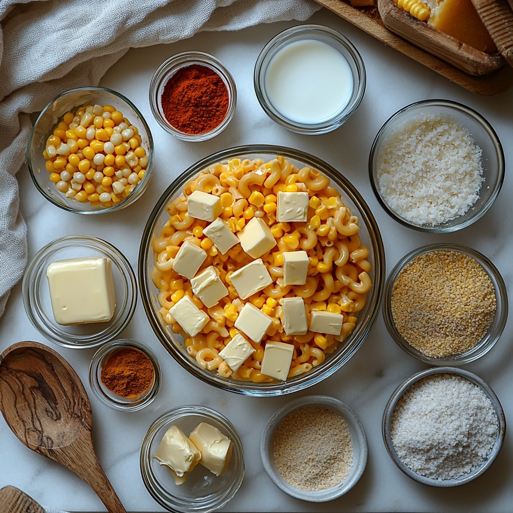 This One-Dish Corn Mac and Cheese Recipe calls for straightforward, pantry-friendly ingredients that work in harmony to create a luscious, flavorful dish. Each ingredient plays a vital role in building the creamy texture and subtle sweetness that makes this recipe stand out.