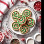 These Peppermint Pinwheel Cookies are festive and delicious, featuring swirls of red, green, and white dough flavored with peppermint and vanilla. Soft and buttery, they are coated with colorful sprinkles and perfect for holiday celebrations or any time you want a delightful minty treat.