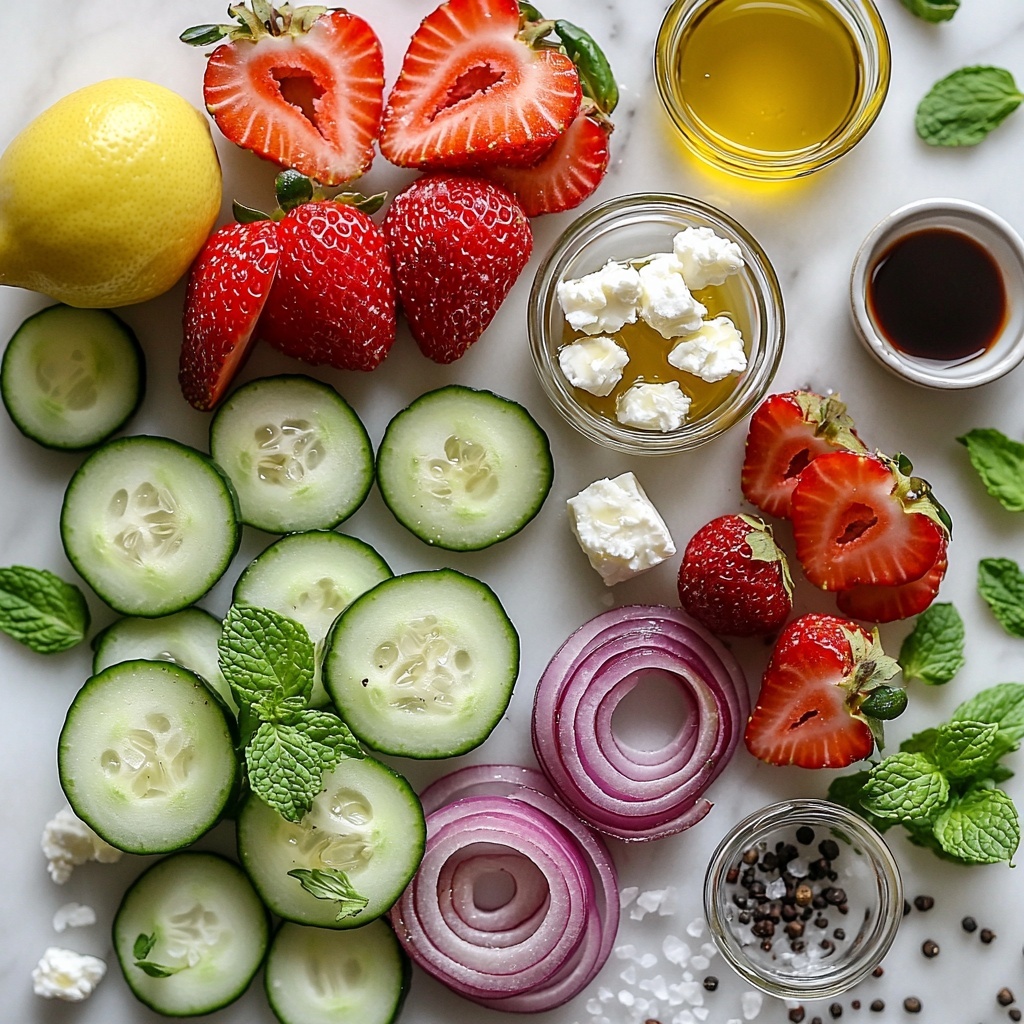 The beauty of this Refreshing Strawberry Cucumber Salad with Feta Recipe lies in its simplicity. Each ingredient plays a crucial role in creating a taste and texture combination that’s both exciting and harmonious. From the natural sweetness of ripe strawberries to the fresh burst of herbs, every element is essential.