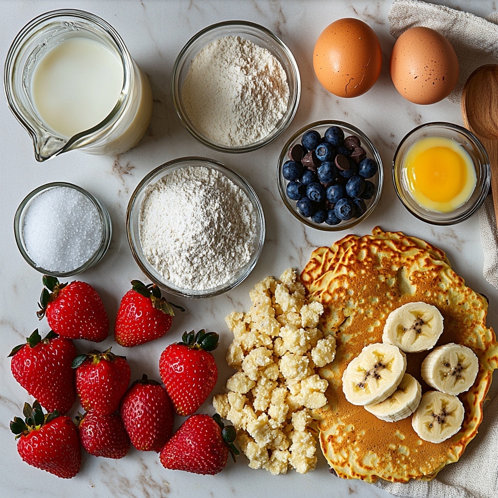 The beauty of this Sheet Pan Pancakes with Fresh Berries, Bananas, and Chocolate Chips Recipe lies not only in its ease but also in the straightforward, wholesome ingredients that bring such wonderful flavor and texture to the dish. Each ingredient plays a crucial role — the flour and baking powder create that classic pancake fluff, while the fresh fruit and chocolate chips bring bursts of sweetness and a pop of color.
