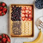 - Add Toppings in Sections: Mentally divide the baking sheet into four equal sections. Arrange sliced strawberries in the first section, blueberries in the second, banana slices in the third, and chocolate chips in the fourth.