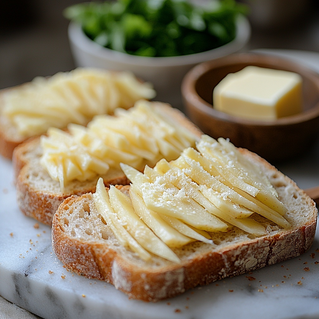 Spread the softened butter generously on one side of each bread slice; this will be the outside that crisps up on the skillet. On the opposite side, spread Dijon mustard if you’re using it—this adds a layer of nuance that balances the rich cheese and tart apples beautifully.