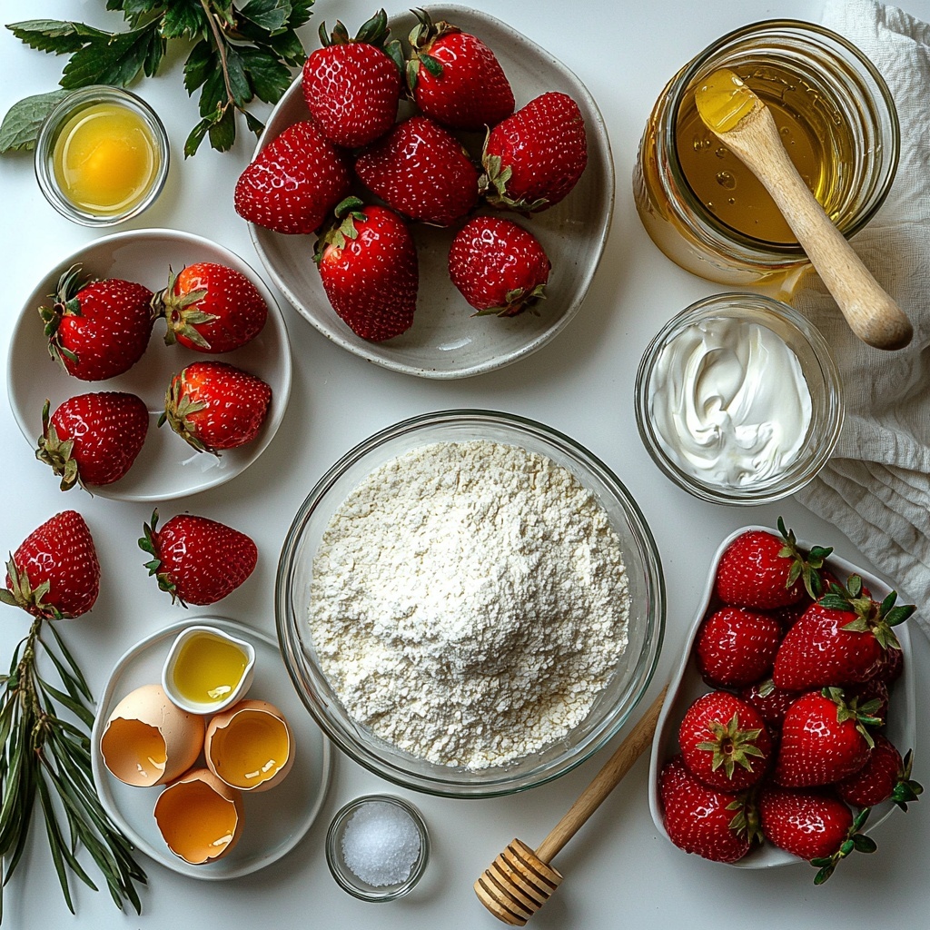 Gathering simple, quality ingredients is the first step toward baking a truly delightful Strawberry Shortcake Cake Recipe. Each component plays a crucial role: the flour and eggs create a tender cake base, the strawberries provide fresh, natural sweetness, and the whipped cream adds that dreamy, airy finish.