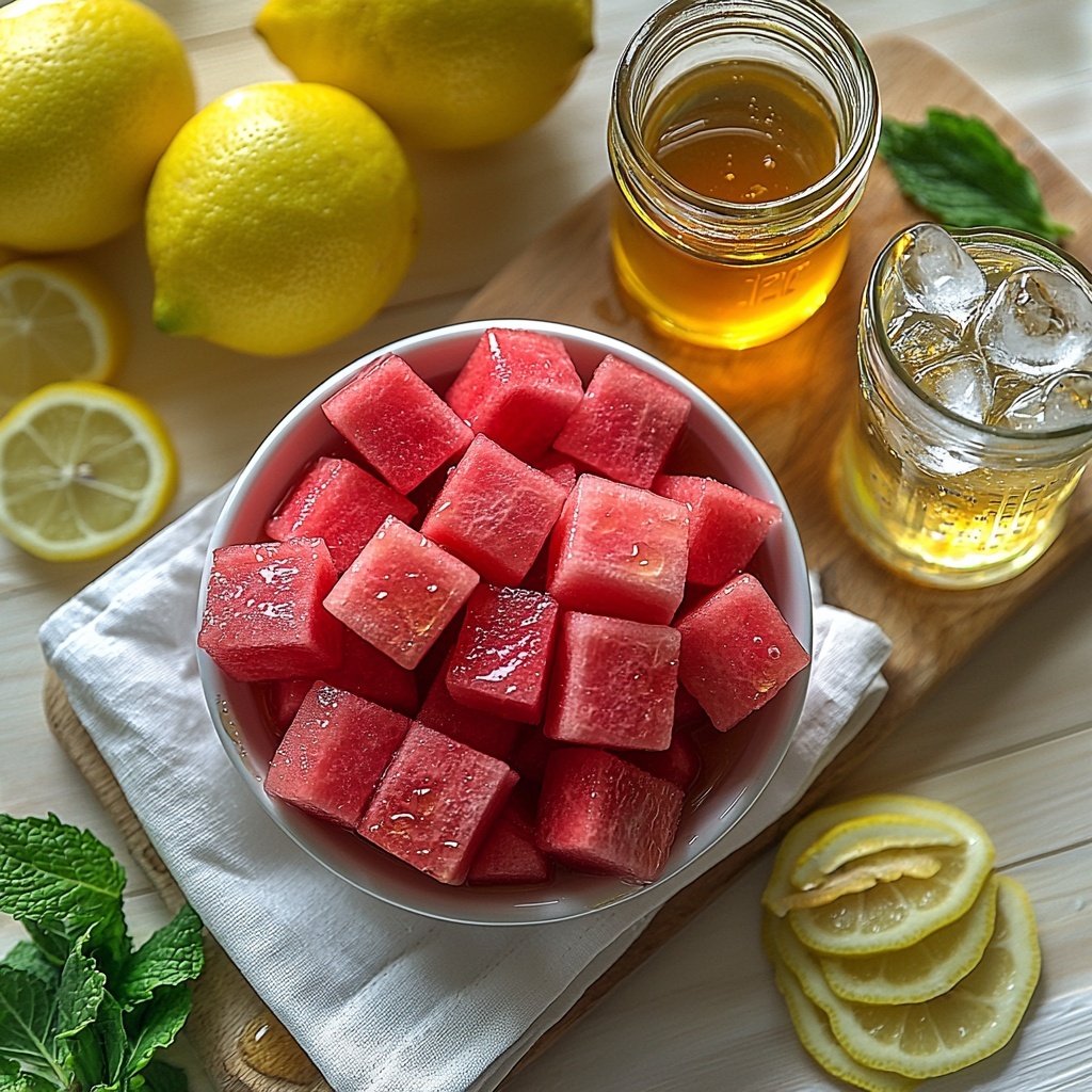 Start by chopping the watermelon into 1-inch cubes, carefully removing the rind and any sizable seeds. Using fresh, ripe watermelon ensures your lemonade will be naturally sweet and bursting with flavor without needing too much added sugar.