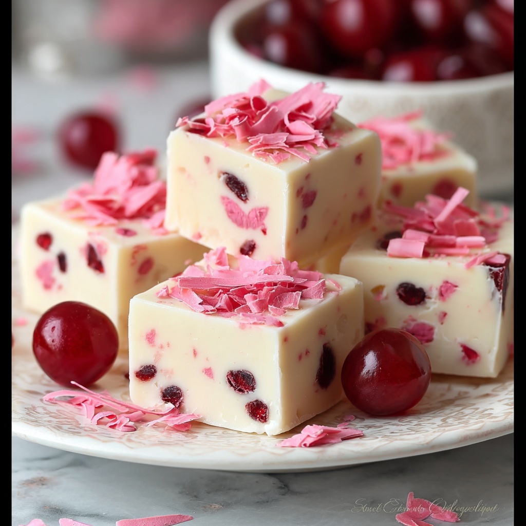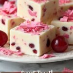 This White Chocolate Cherry Fudge is a luscious, creamy sweet treat combining the smoothness of white chocolate and marshmallow cream with the tartness of dried maraschino cherries. Perfectly set to a soft, chewy texture, it’s an indulgent candy that’s easy to make and ideal for sharing at holidays, parties, or any special occasion.